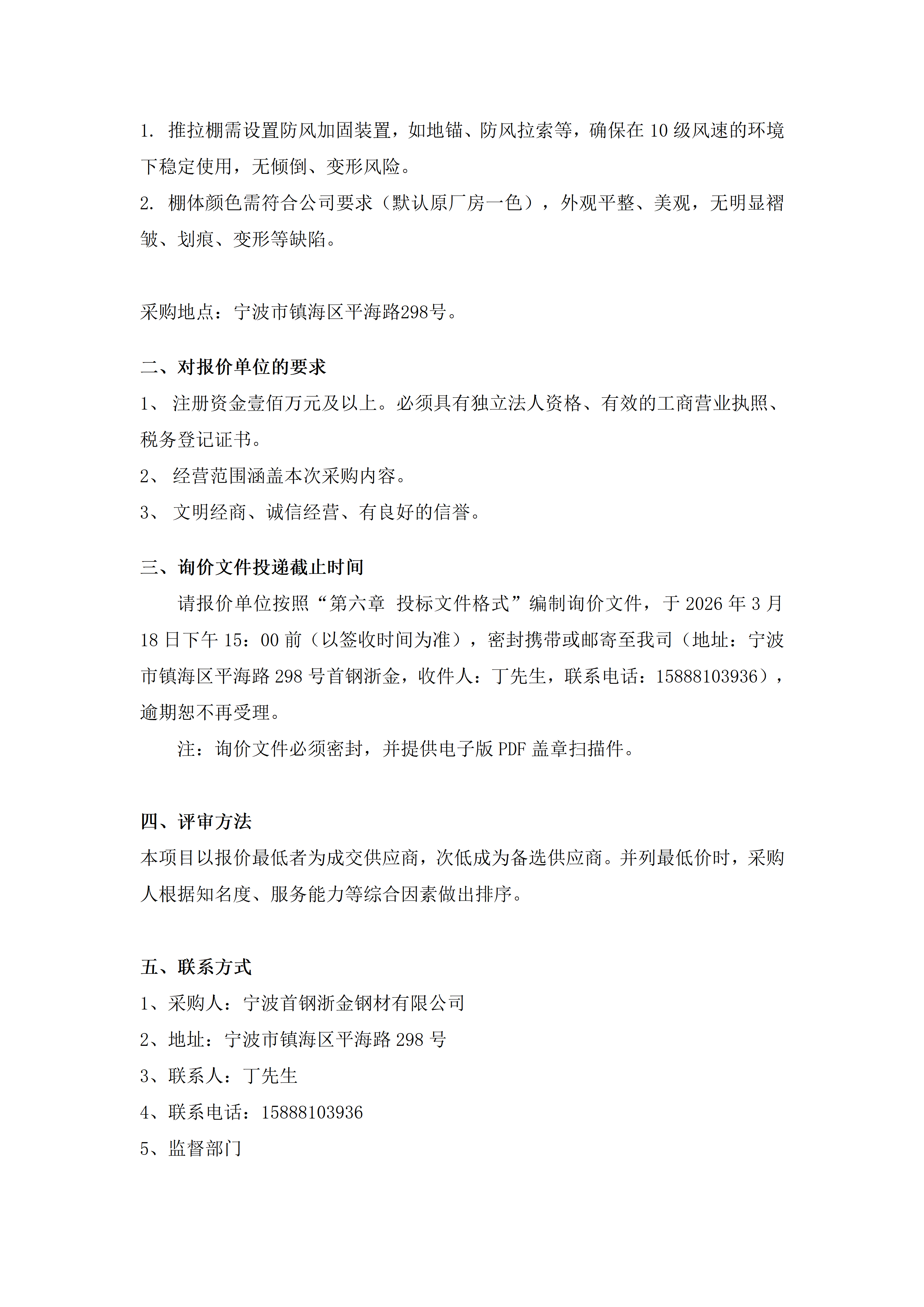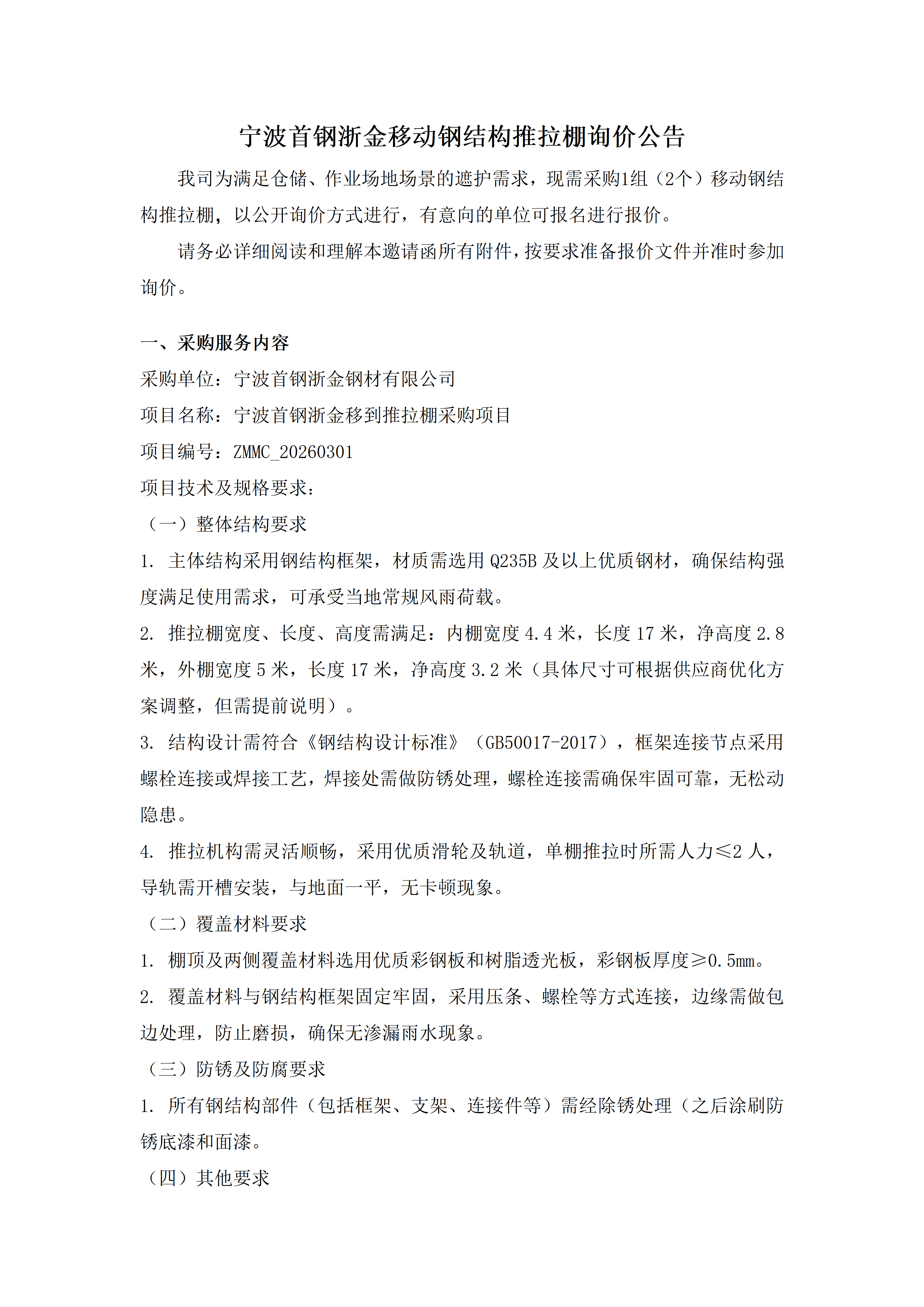 宁波首钢浙金移动钢结构推拉棚询价公告