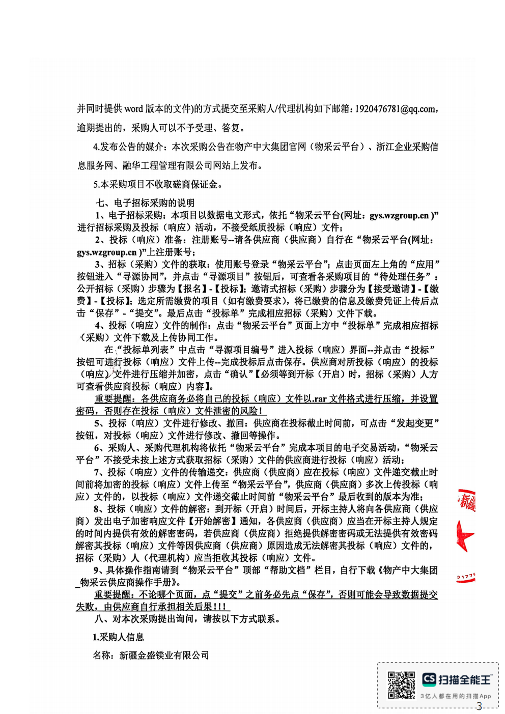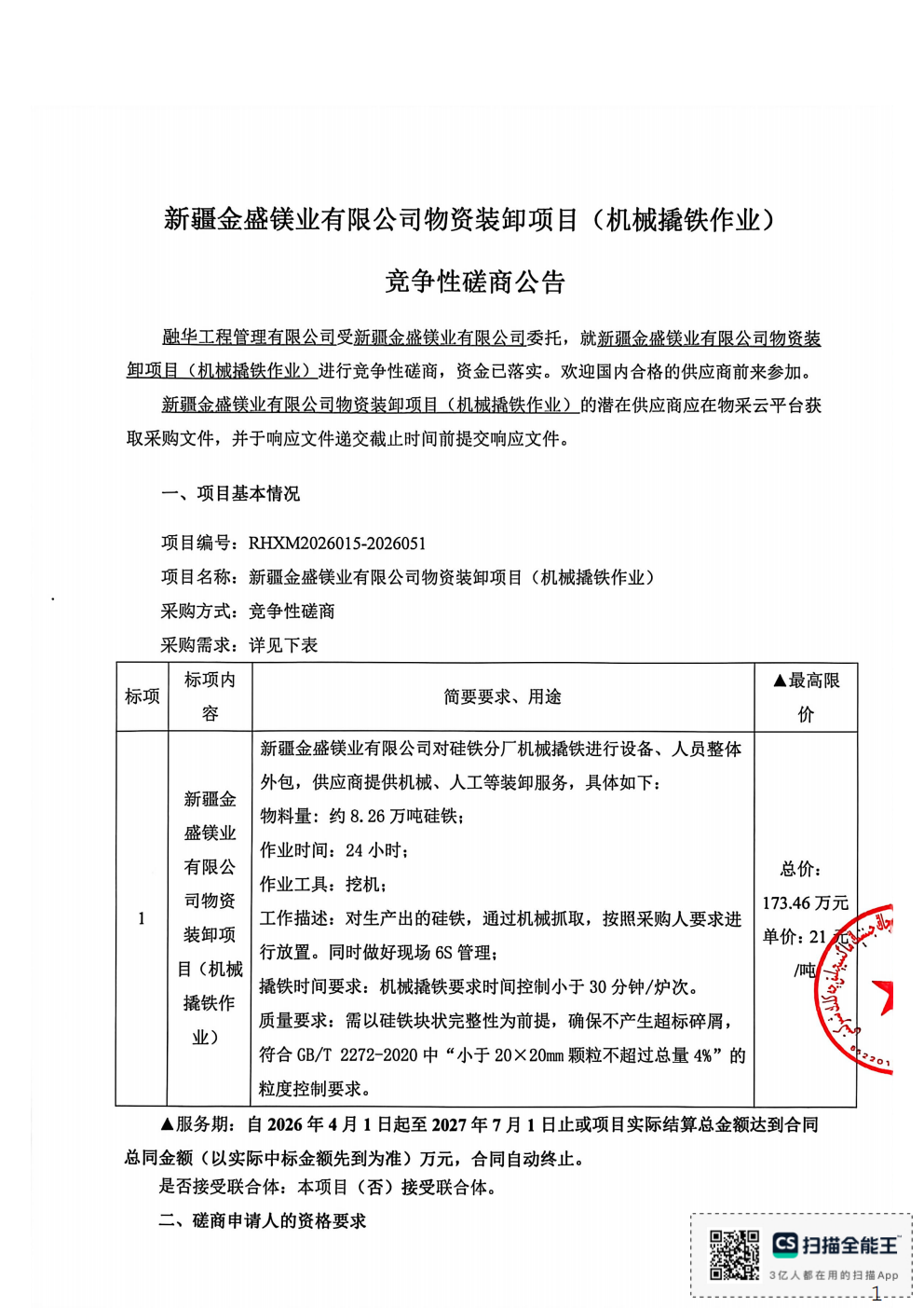 新疆金盛镁业有限公司物资装卸项目(机械撬铁作业)竞争性磋商公告