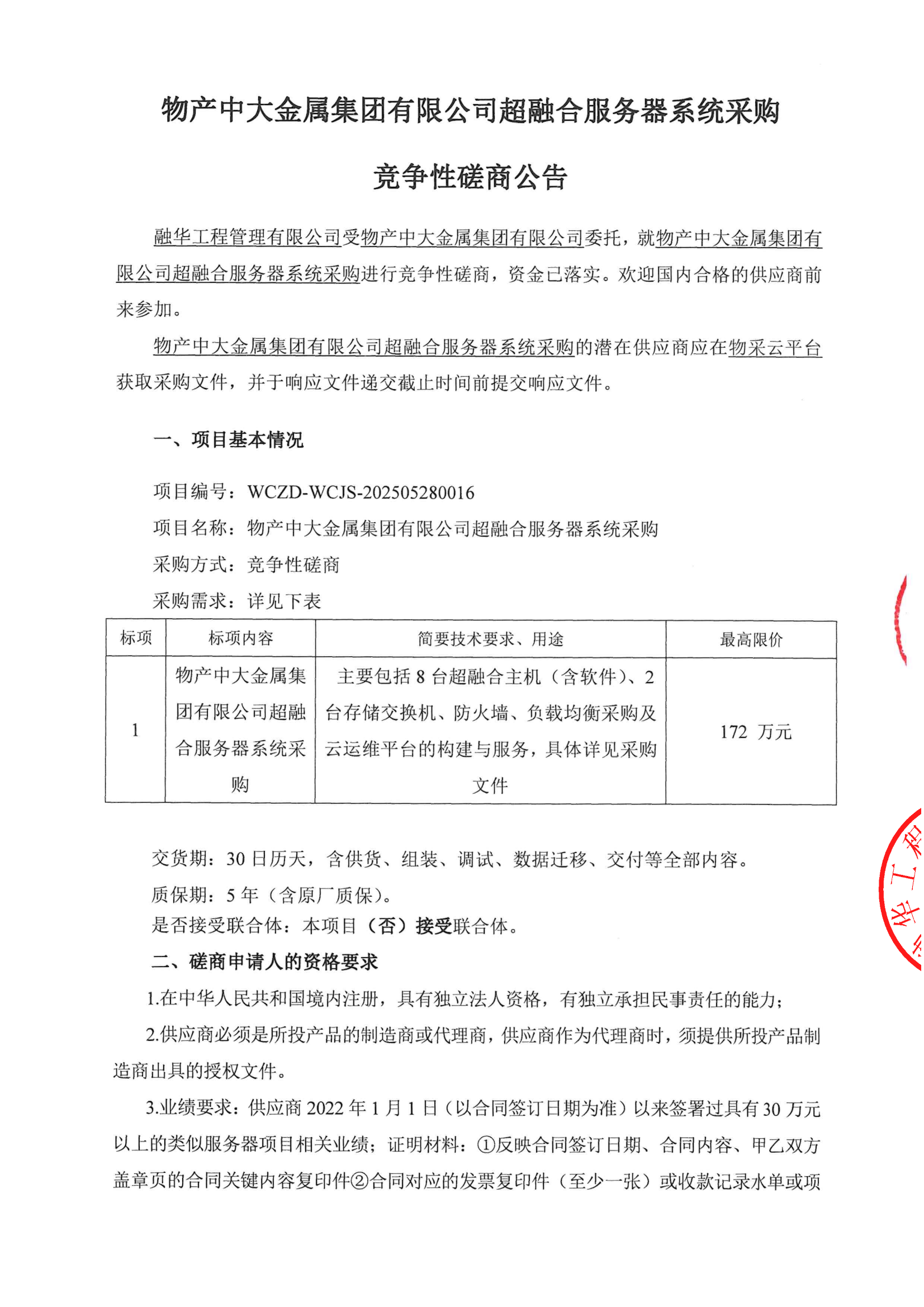 物产中大金属集团有限公司超融合服务器系统采购竞争性磋商公告
