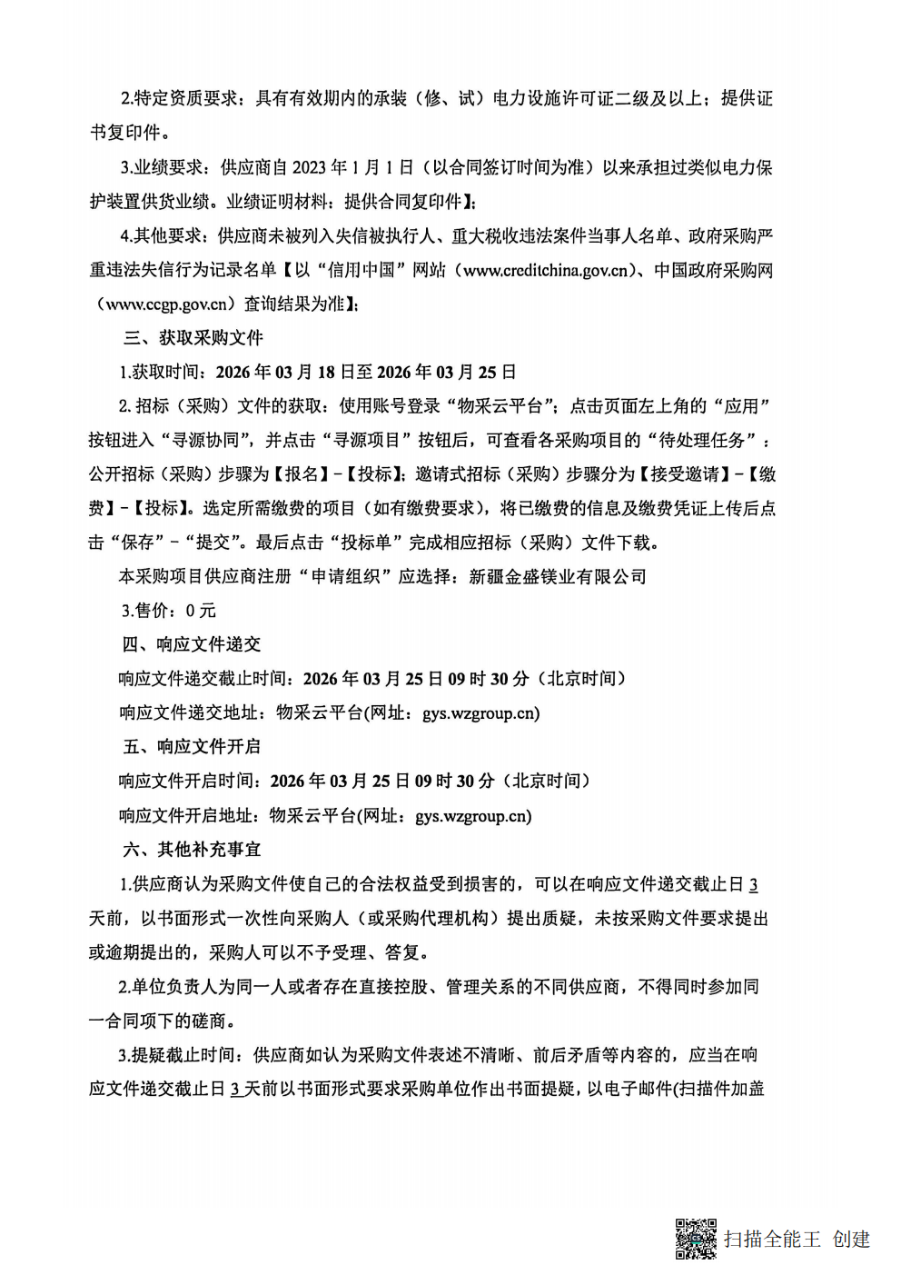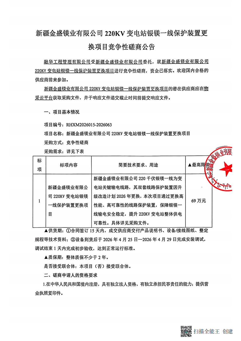 新疆金盛镁业有限公司220KV变电站银镁一线保护装置更换项目竞争性磋商公告
