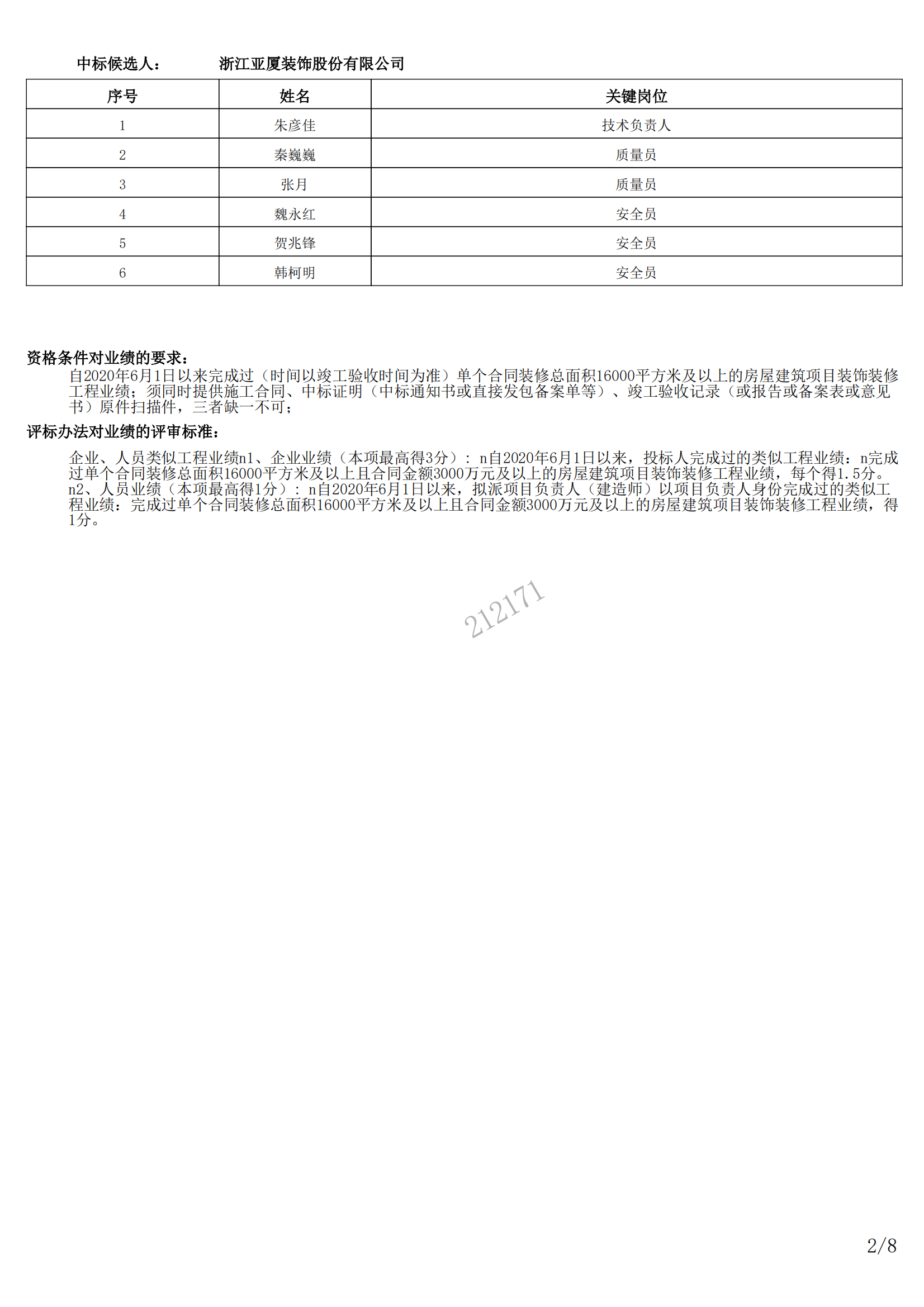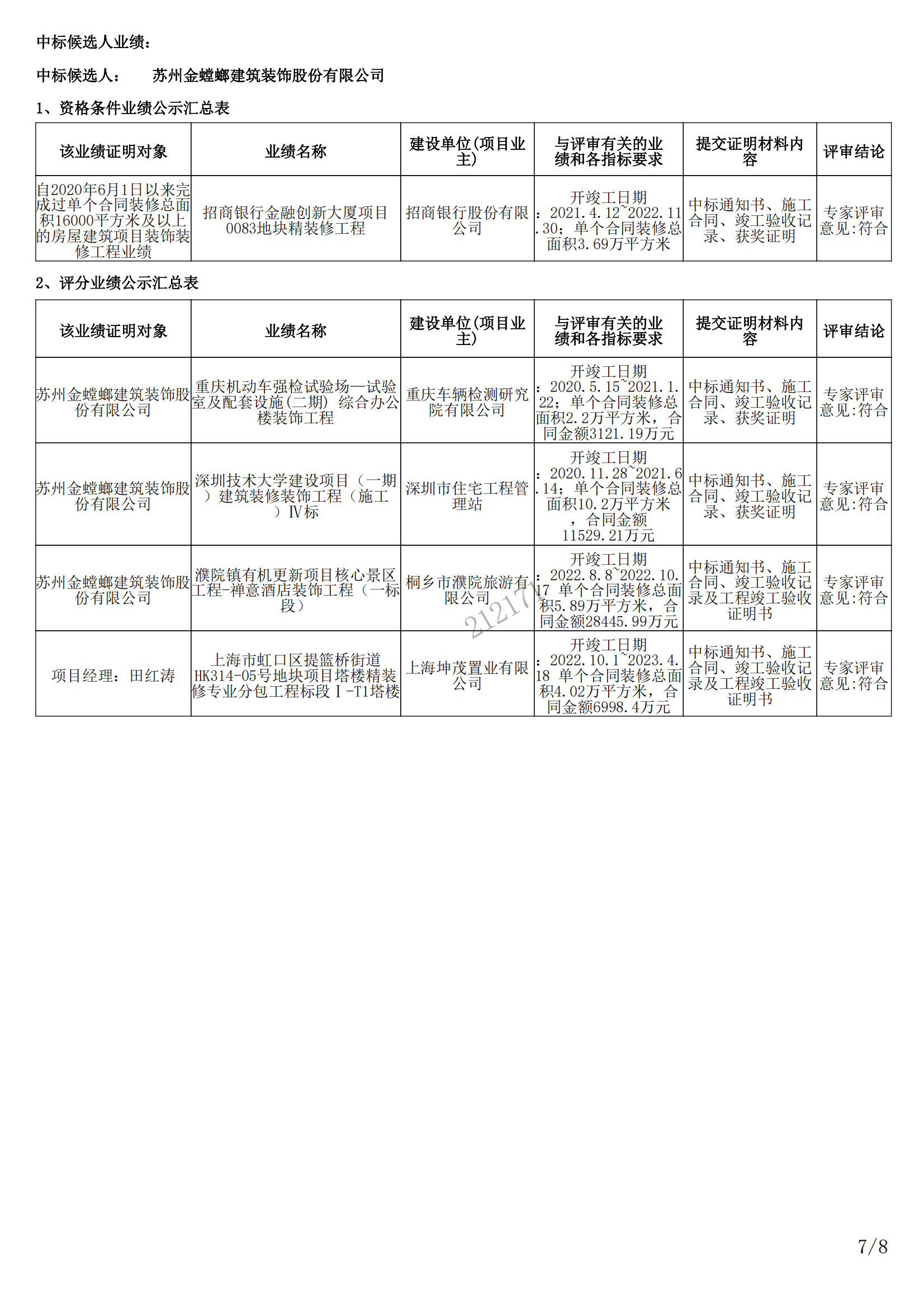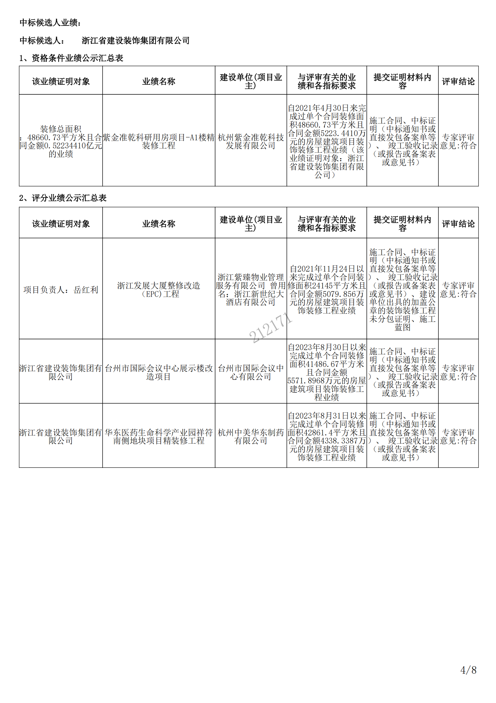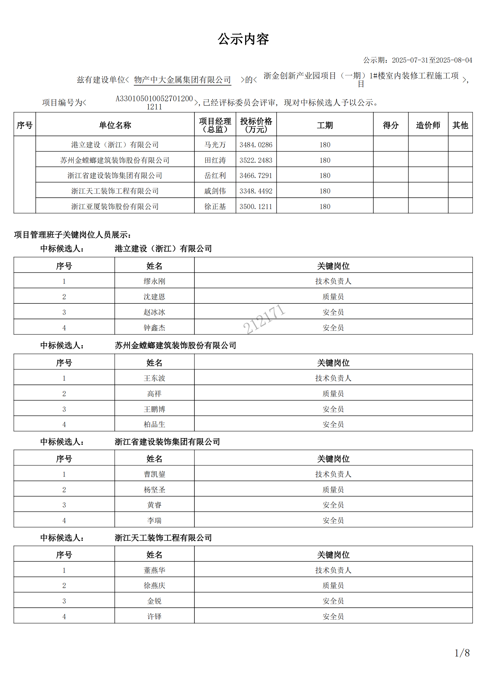 浙金创新产业园项目(一期)1#楼室内装修工程中标候选人公示